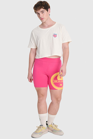 Os biker shorts, por sua vez, entram para valorizar as pernas e dar um toque esportivo, mostrando atitude sem esforço. A dupla óculos estilosos + tênis complementa com aquele toque urbano que deixa o look alinhado e pronto pra qualquer ocasião casual, desde um café com os amigos até um rolê rápido na cidade.